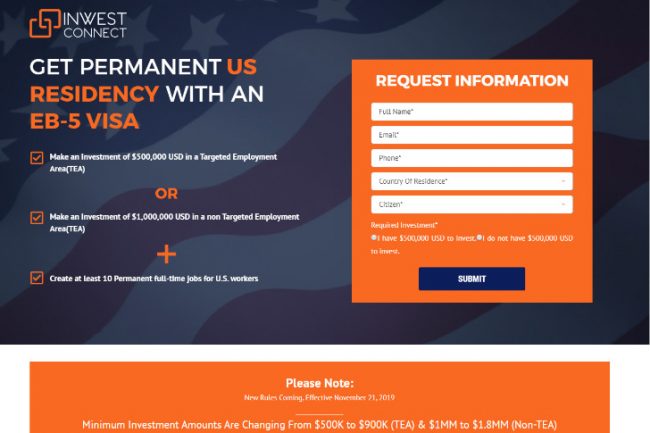 Inwest Connect Landing Page